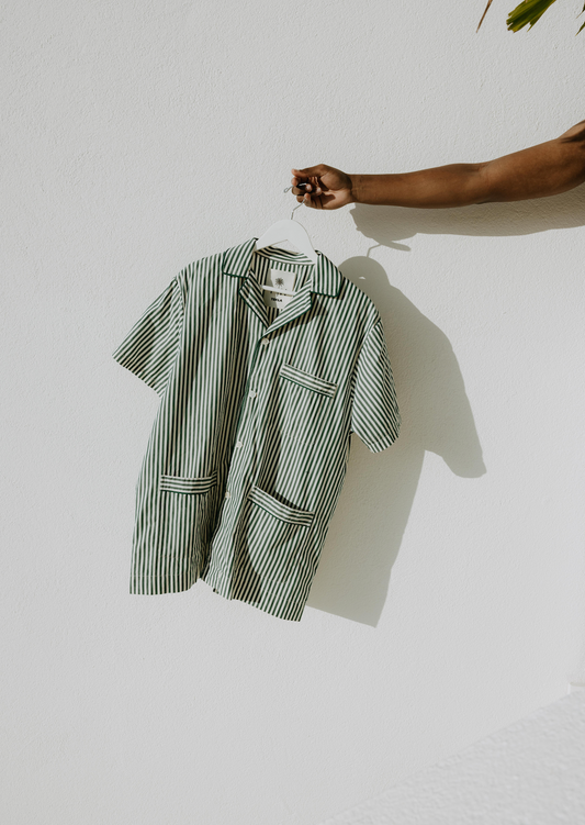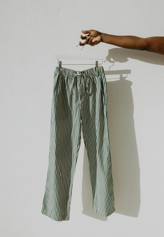 Copenhagen label, TEKLA teamed up with Palm Heights to release a limited-edition sleepwear set that is exclusive to the hotel. The collaboration features a genderless two-piece pajama set, made of high-quality, and 100% organic certified cotton. The set comes in Tekla’s signature vertical stripe pattern but in a Palm Heights-exclusive dark green and white colorway, complete with a co-branded label inside the garments.