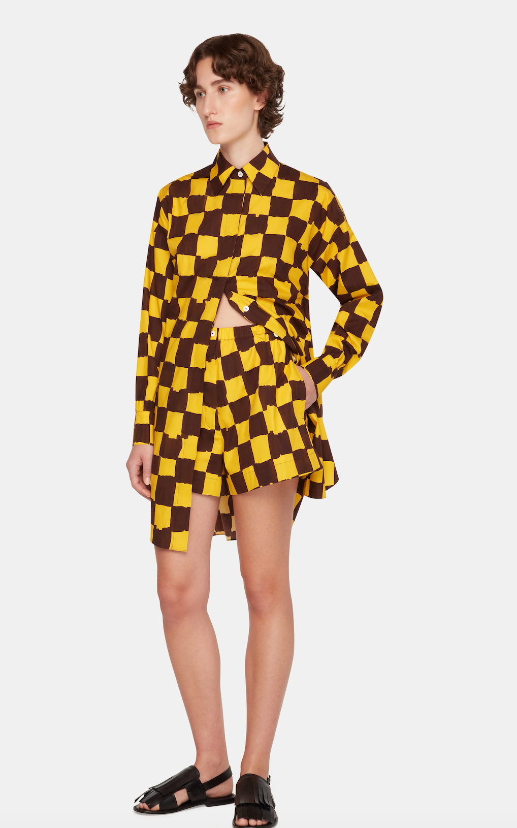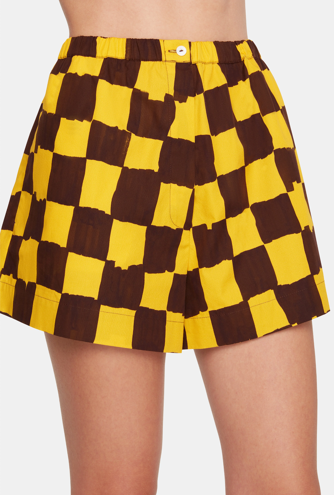Emilia Wickstead x Palm Heights Pasqa Shorts in Chocolate and Yellow Checkerboard Print Cotton
